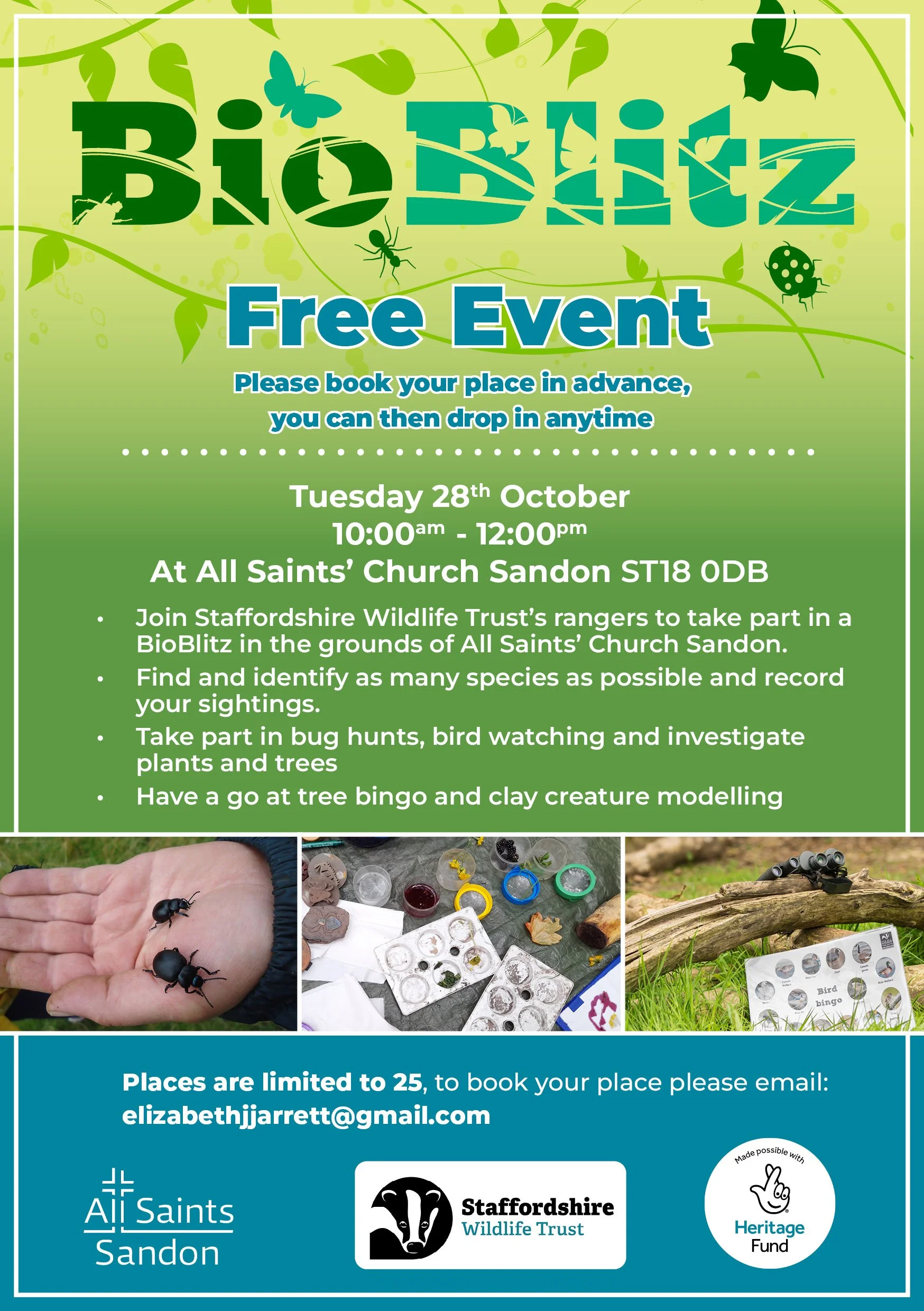 Drop in to bug hunt, bird watch or examine plants and trees. The data you collect will help Staffordshire’s Ecological Records service protect wildlife for future generations.